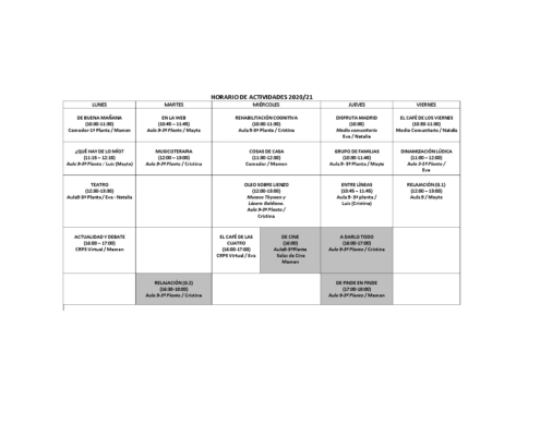 Hola!! Os informamos de los nuevos cambios del CRPS. Si tu actividad era cada 15 días, te informamos que A PARTIR DEL 19 DE OCTUBRE, pasará a ser TODAS LAS SEMANAS, como era antes.