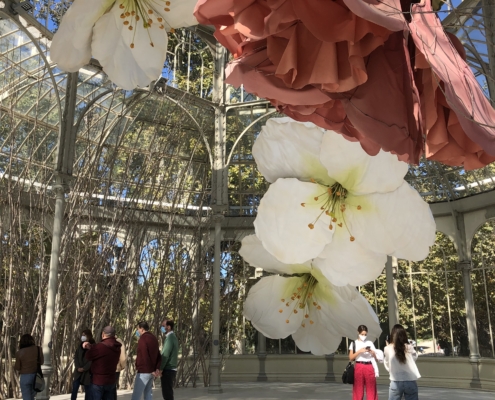 El Palacio de Cristal del Retiro de Madrid, se llena de flores gigantes.