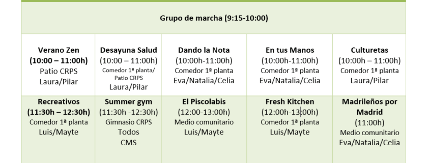 Entérate, TalleresHORARIO DE ACTIVIDADES VERANO 2025Desde el lunes 23 de junio al viernes 29 de agosto modificamos nuestra parrilla de actividades ordinarias, ofreciendo una nueva propuesta ¡¡para sobrellevar el verano de la mejor manera posible!! junio 16, 2025/0 Comentarios/por Luis Molinero https://crpsvirtual.com/wp-content/uploads/2025/06/horario-verano-corregido.png 592 1057 Luis Molinero https://crpsvirtual.com/wp-content/uploads/2020/04/logo-3.png Luis Molinero2025-06-16 12:14:482025-06-27 11:56:07HORARIO DE ACTIVIDADES VERANO 2025